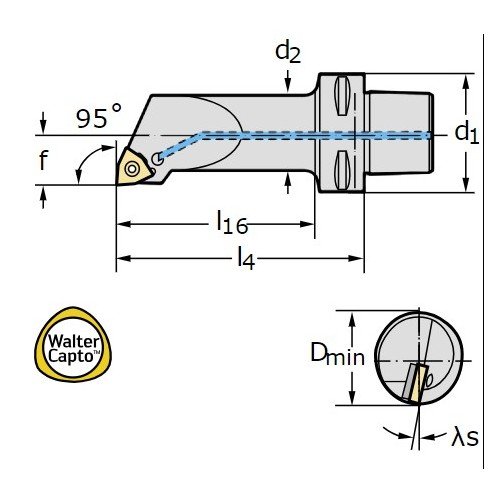 Porte-outil pour outils à queue Serrage par vis SCLC - Walter Turn - métrique - Section carrée - K 95° - Gauche - 25x25 mm - plaquette rhombique - CC 1204